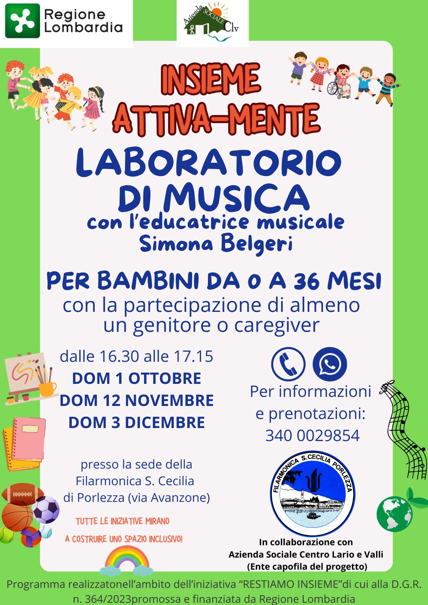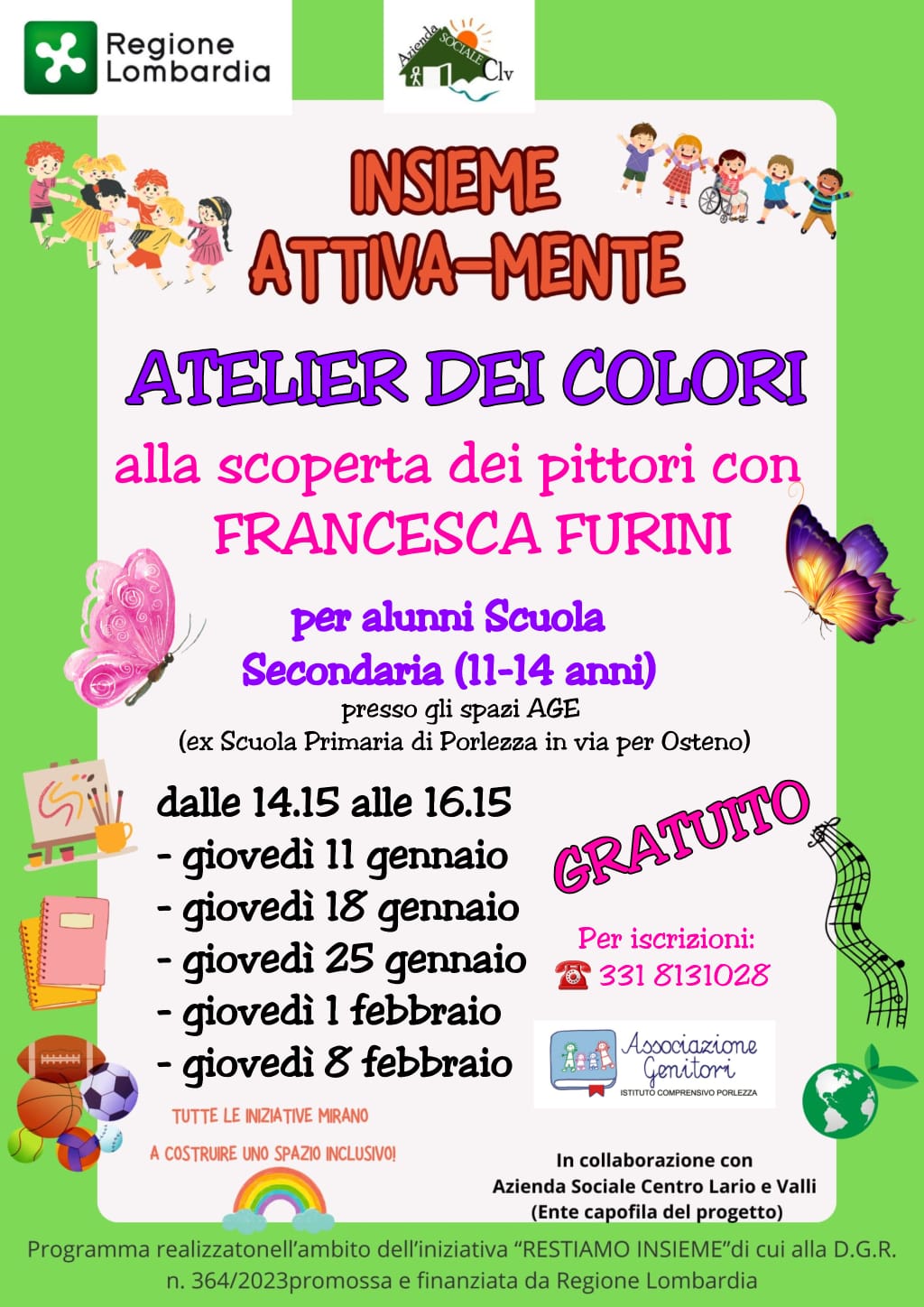 Si rende nota la possibilità di alcuni eventi gratuiti per bambini e ragazzi sul nostro territorio.