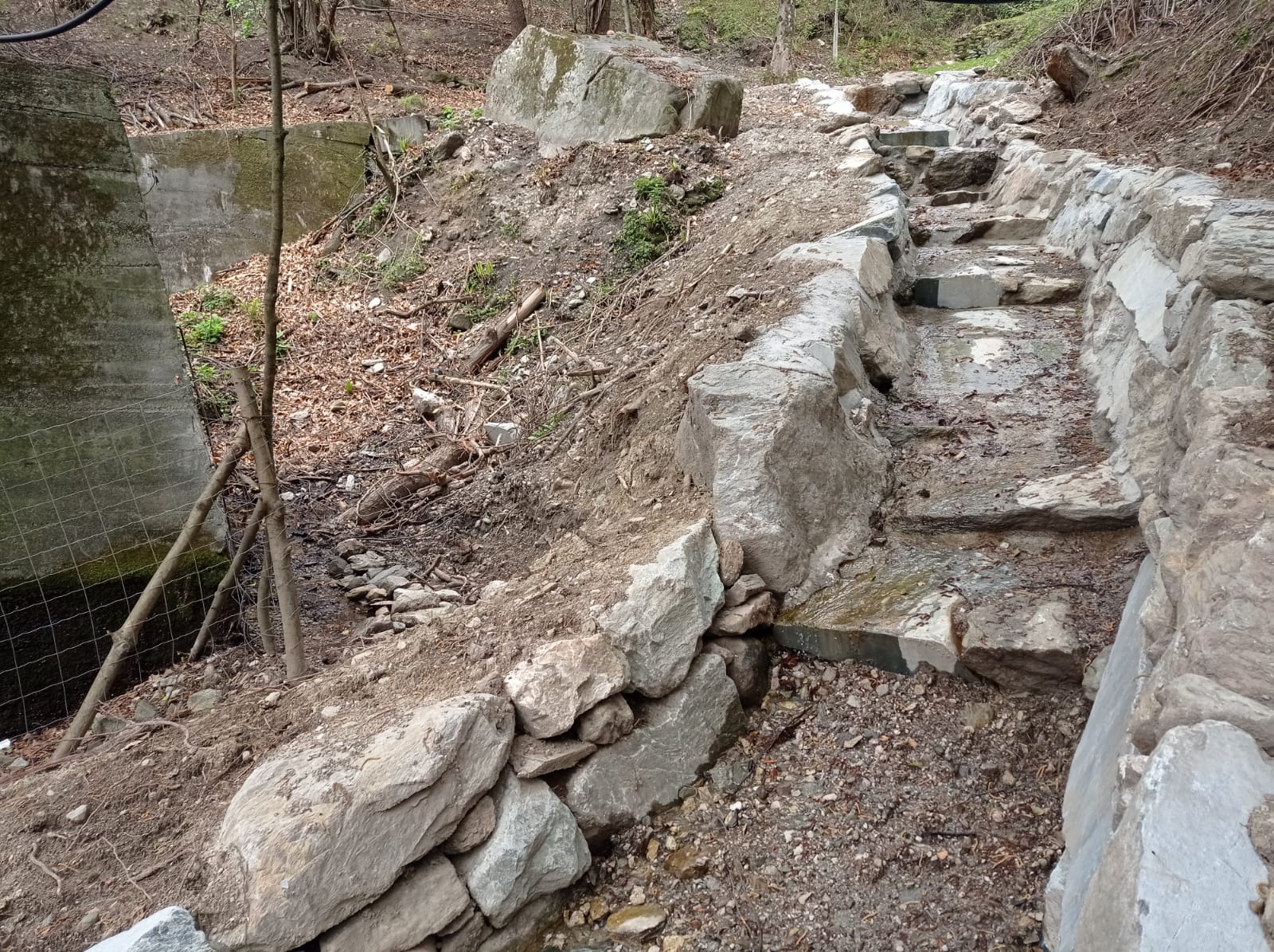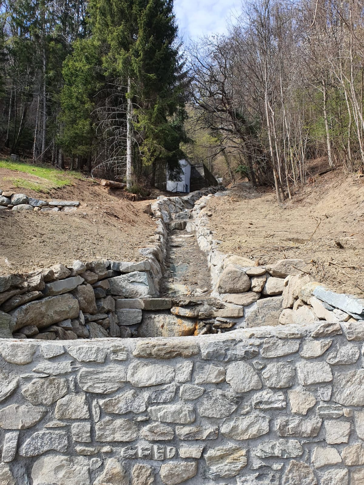 Lavori di regimentazione delle acque con argini drenanti e vasca per recupero detriti, al fine di prevenire il dissesto idro-geologico e non sempre subirlo.
